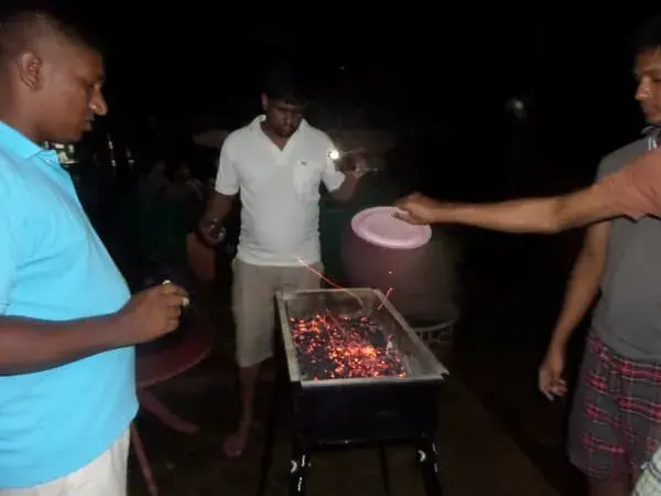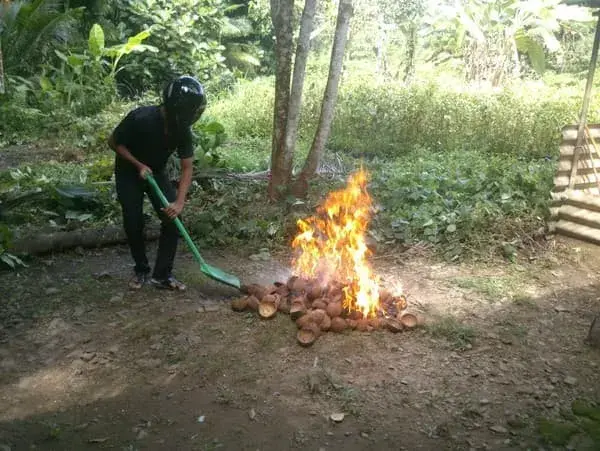 බාබක්‍යු වැඩේට කඩෙන් ගන්න අඟුරු පත්තු කරගන්න ටිකක් අමාරු නිසා, උත්ප්‍රේරකයක් විදියට පොල් කටු අඟුරු ටිකක් හදං යන්න අපි හිතල තිබ්බෙ. මේ තියෙන්නෙ ට්‍රිප්පෙක යන්න කලිං දවසෙ අපි පොල් කටු අඟුරු හදපු විදිය.